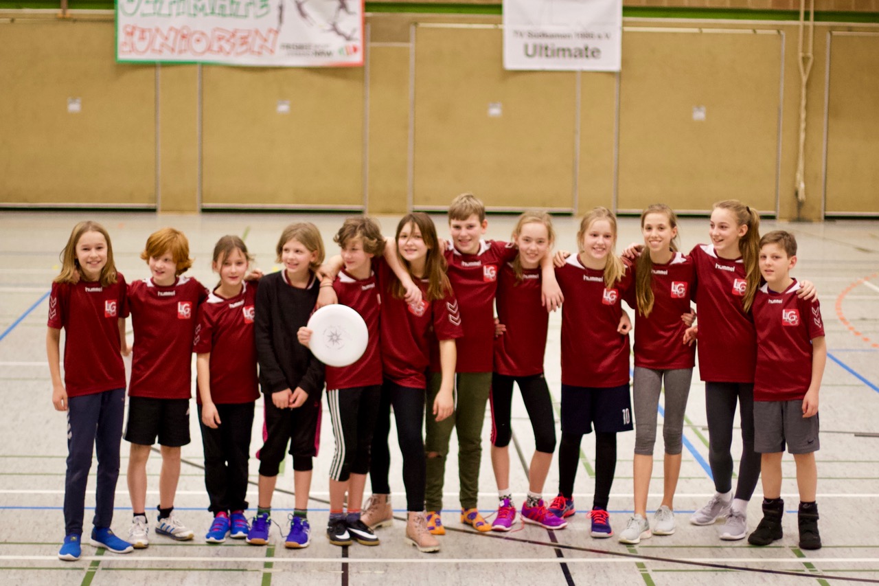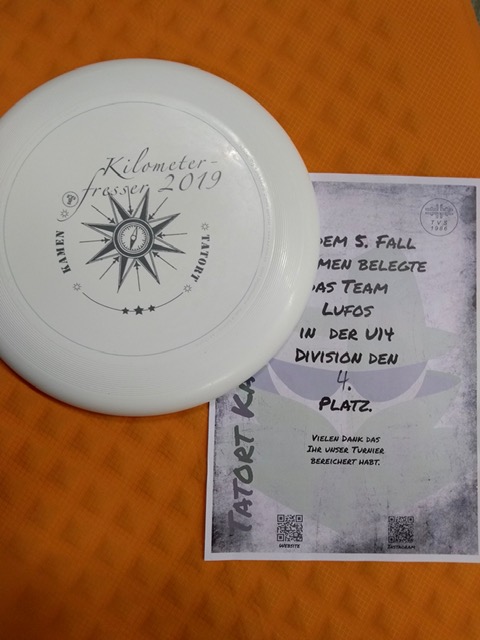 Das Team hat sehr gut gespielt und konnte als vierte Sieger abschneiden. Im ersten Spiel ging es gegen die Heim-Mannschaft und wir konnten gleich zeigen, was wir alles gelernt haben. Konzentriert und mit großer Freude gab es einen Auftaktsieg. Auch das nächste Spiel gegen Nullacht aus Münster wurde ein Sieg. Erst gegen den amtierenden Deutschen Meister und Turnierverteidiger, die Äitschbees aus Hermannsburg, gab es eine deutliche Niederlage. Als zweitbestes Team der Vorrunde haben wir aber dennoch das Halbfinale erreicht, das wir recht knapp gegen AUC aus Amsterdam verloren. Im Platzierungsspiel ging es dann vor großer Kulisse gegen die Piratos aus Karlsruhe. Das Spiel war sehr ausgeglichen und die Kinder haben sich super reingehängt, mit dem leicht besseren Ende für die Karlsruher. Natürlich tat die Niederlage etwas weh, aber als Team mit der weitesten Anreise und als zweiter in der Spiritwertung in der U14-Division sind wir in bleibender Erinnerung geblieben und wurden gleich für das nächste Jahr wieder eingeladen.