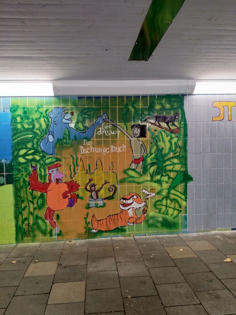 Schüler und Schülerinnen des Ludwigsgymnasiums und der Georg-Büchner-Realschule haben die Rad- und Fußgängerunterführung Westendstraße / Stegener Weg künstlerisch gestaltet. Inspiration für die Schüler*innen des Ludwigsgymnasiums waren alte Filmplakate, die auf das im Westpark gelegene Freiluftkino Bezug nehmen, unter anderem von Klassikern wie ‚Star Wars’, ‚Dschungelbuch’ und ‚Mary Poppins’. Die Georg-Büchner-Schule wählte die Themen ‚Stadt’, ‚Park’ sowie freie Kreationen als Grundlage.